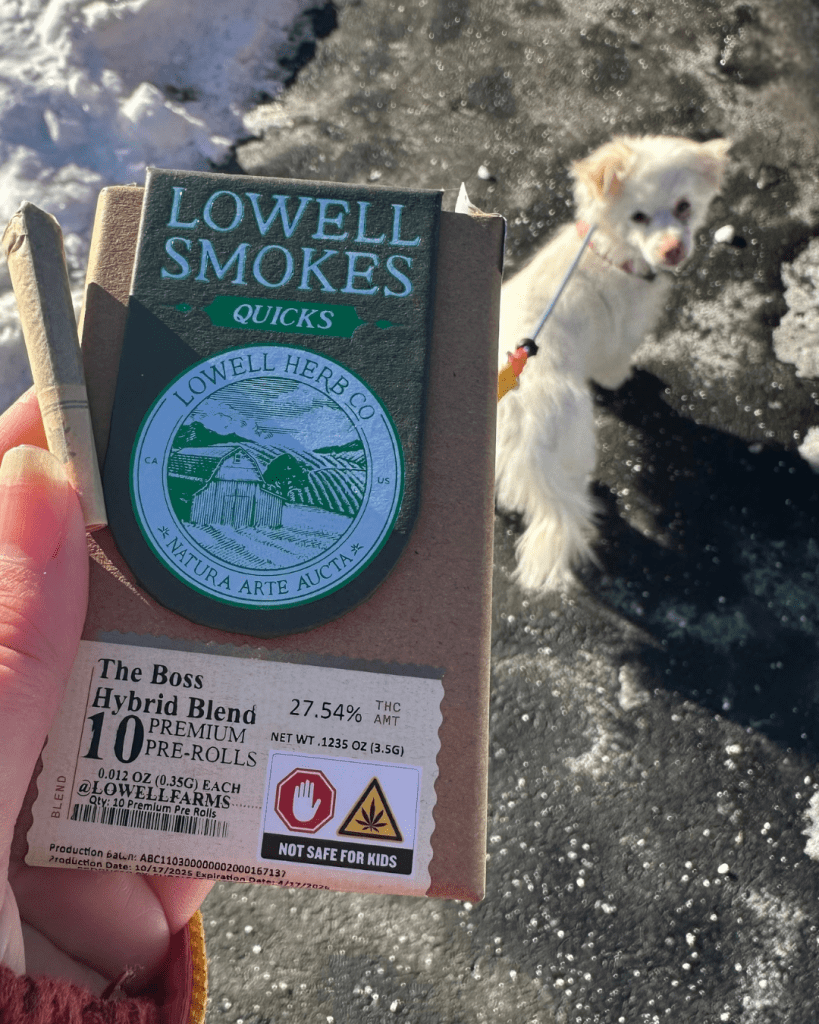 Under “normal” circumstances (when it’s not fucking FREEZING outside!), Lowell Smokes are my favorite anytime preroll–but these aren’t normal circumstances. It *is* fucking freezing outside. And let me tell you, discovering these lil smokes just before the brutal NY/PA winter has been a godsend! Johnny – my sensitive-to-cold, diva dog – definitely agrees! 10/10 HIGH-ly recommended.